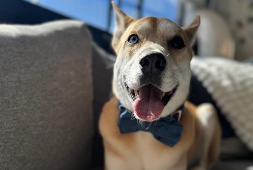Meet Eli, our charming and friendly American Dingo! He's always turning heads with one blue eye, one brown eye, and his signature blue bowtie. Eli loves everyone he meets and tries to be everybody’s best friend. Whether it’s a walk around the neighborhood or a quick hello in the hallway, he’s always ready to brighten someone’s day.